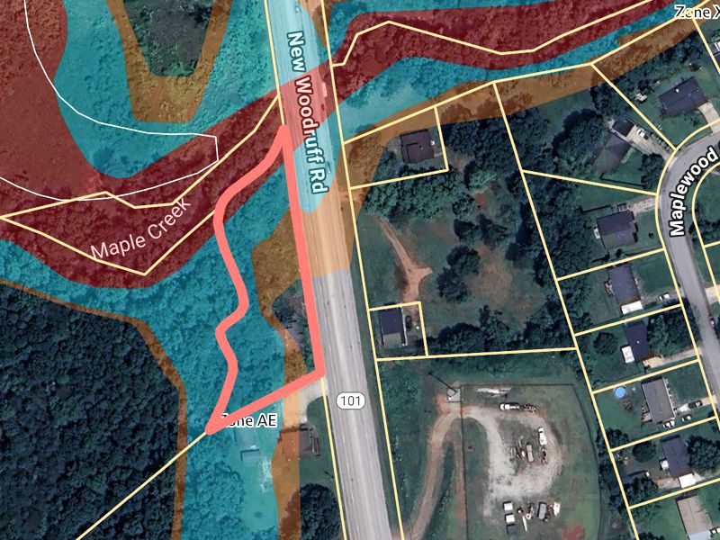 Property Notes: | Prime opportunity on Hwy 101 with 283+- feet of frontage and an average daily traffic count of 12,200 vehicles per day (per SCDOT). This .745+- acre lot in Spartanburg County is strategically located just minutes from Greenville-Spartanburg International Airport, I-85, and downtown Greer. The property offers exceptional visibility and accessibility in a thriving growth corridor. The property includes a 930+- sf structure in need of a full renovation. Investors, business owners and developers alike will appreciate the high exposure location and versatile potential of this site. PORTION OF PROPERTY IN FLOOD ZONE. |